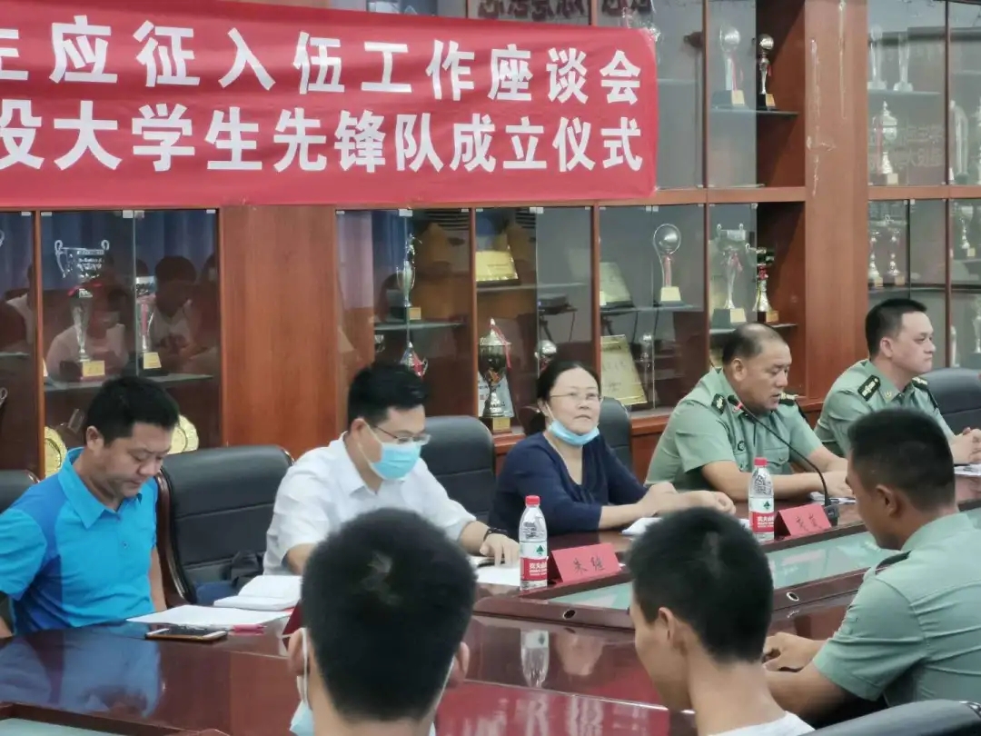 2020年9月10日15:00,公司在体育馆二楼会议室召开了英国上市公司官网365老员工参军应征工作座谈会暨地大攀登者退役老员工先锋队成立仪式。出席此次会议的领导有武装部副部长单红峰,学工部副部长朱继,武装部老师魏刚,公司党总支书记庞岚,公司党总支副书记张延平。参与本次会议的人员有英国上市公司官网365在校的退役老员工和2020年应征入伍员工,以及英国上市公司官网365部分同学。会议由131181班的陈岳峰同学主持。