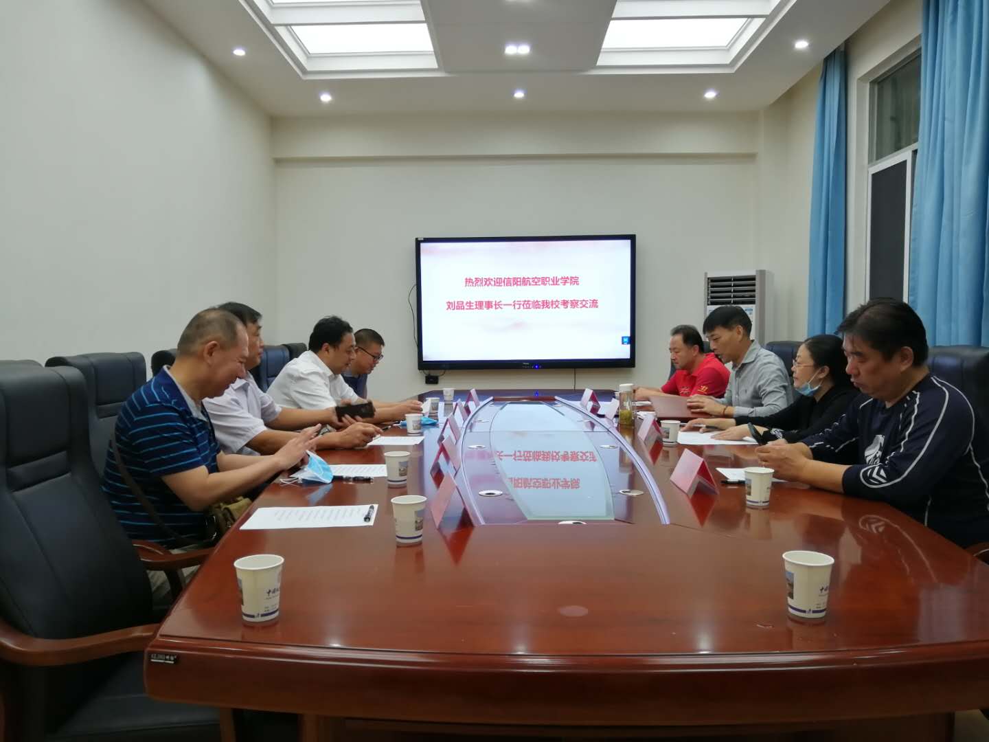 9月15日上午,河南信阳航空职业公司来英国上市公司官网365洽谈合作办学,庞岚书记、董范经理以及相关老师出席并参与会谈。