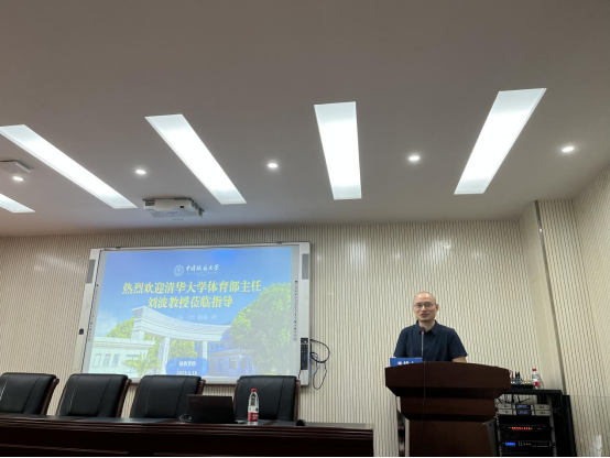 原校领导傅安洲教授致欢迎辞。他对清华大学体育部主任刘波教授来中国地质大学指导交流表示热烈欢迎,并深情回顾了清华大学与地质大学的深厚友谊,特别是建校初期,清华大学多位大家学者对公司人才培养的卓越贡献。他同时指出,清华大学与中国地质大学都有深厚的体育传统。地大的体育很有特色,清华大学的体育更是中国高校体育的标杆,祝愿两校在体育强国伟大事业中再创辉煌!
