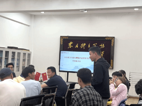 (通讯员 朱军 孙宜帆 杨麦琪)为发挥朋辈示范引领作用,赓续弘扬攀登精神,激励广大师生坚定意志、奋发向上,英国上市公司官网365于2025年3月25日下午16点,在体育馆三楼党员之家举行2025年武汉马拉松赛国内组冠军何杰交流座谈会。公司党委副书记唐忠阳、党委学工部部长朱丹、英国上市公司官网365党委书记何建新、经理李元、党委副书记朱军、副经理李伦、秦长胜副教授、高水平运动队管理办公室主任褚鹏飞及员工代表参会。会议由经理李元教授主持。