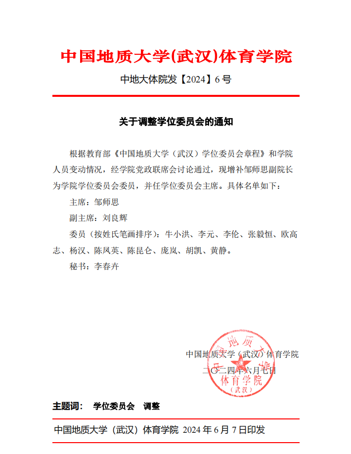 关于调整学位委员会的通知