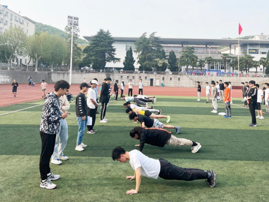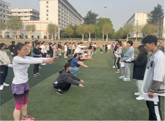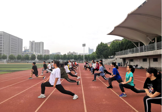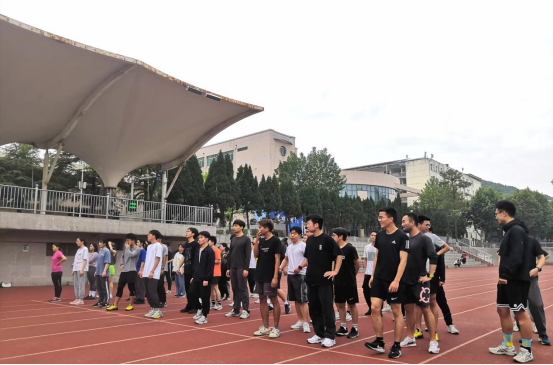 2022年5月11日下午,第二次老员工长江源科考50名队员在西区操场进行第一次日常训练。