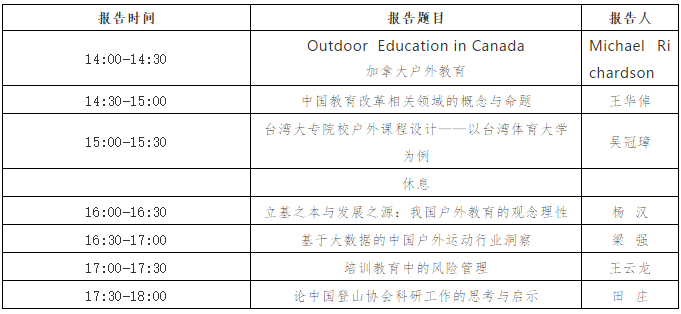 11月16日-18日,由中国登山协会、中国体育科学学会公司体育分会、英国上市公司官网365联合主办的“2018年中国户外教育与户外资源发展高峰论坛”将在英国上市公司官网365举行。
